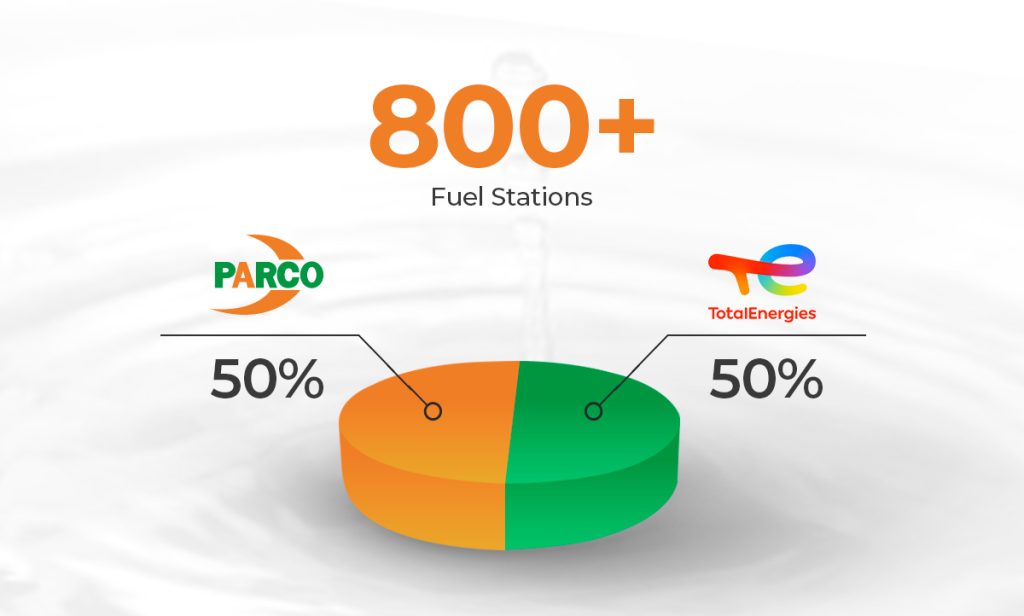 PARCO also has a successful marketing joint venture with TOTAL Energies Marketing & Services of France in the form of Total PARCO Pakistan Limited (TPPL), standing as one of the prominent oil and gas marketing companies. After the acquisition of Chevron Pakistan Limited (renamed as TOTAL PARCO Marketing Limited) by TPPL, today, the TOTAL PARCO network is a 50:50 joint venture with more than 800 retail fuel outlets, plus a lubricants blending and marketing business, making it the second Largest Oil Marketing Company in Pakistan.